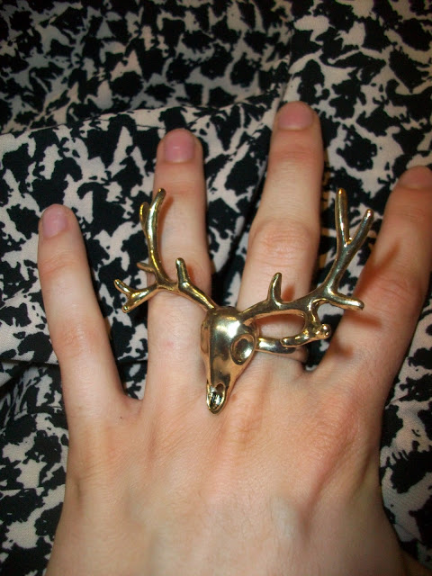 Stag skull ring, Topshop; Ring/bracelet, Urban Outfitters.